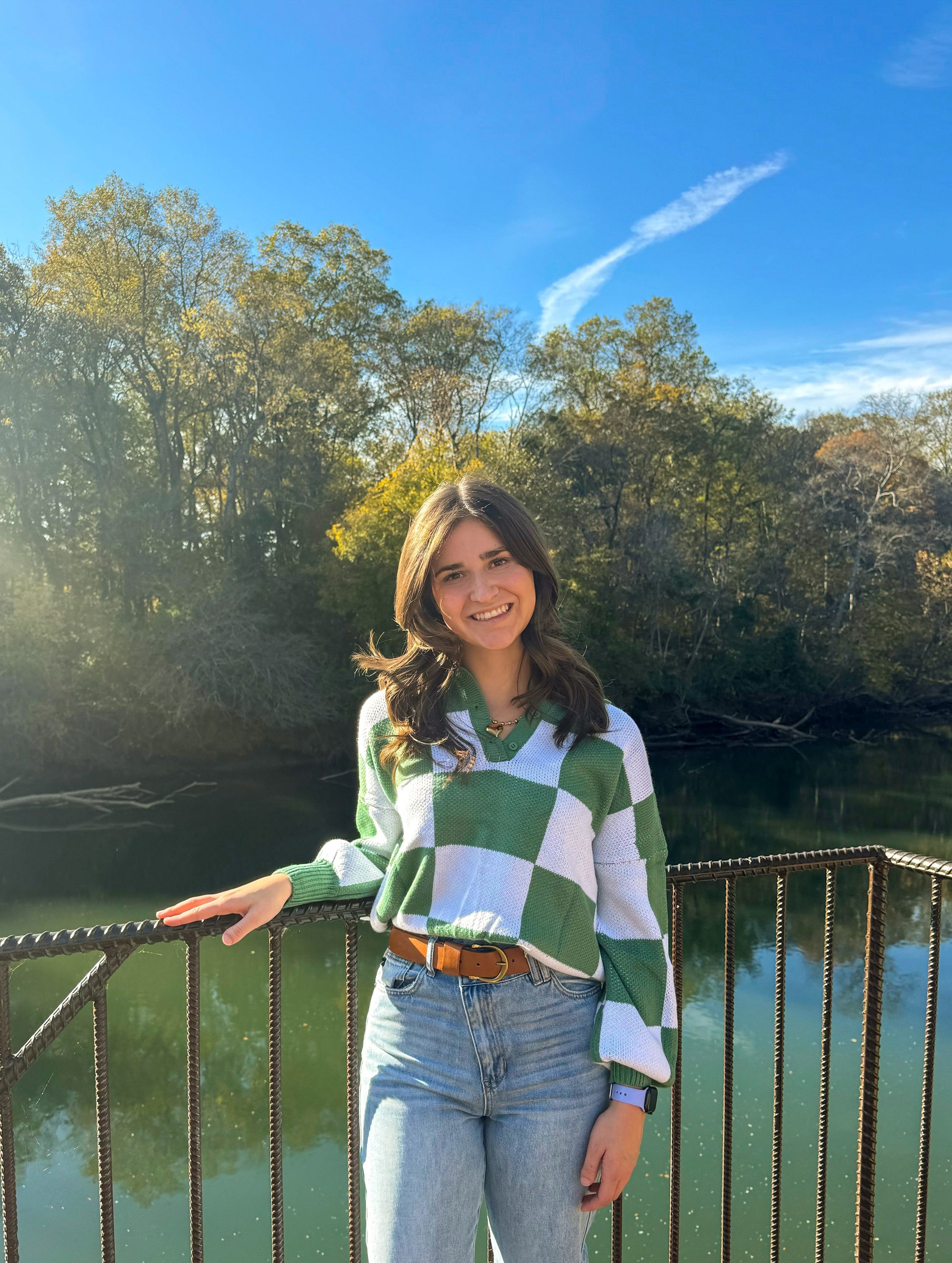 Stay cozy and effortlessly chic in this Checkered V-Neck Collared Pullover Sweater. Featuring an oversized fit and soft knit fabric, this sweater combines comfort with a bold, eye-catching checkered design in green and cream. The collared neckline and button detail add a touch of casual sophistication, making it perfect for pairing with jeans, leggings, or your favorite lounge pants. Whether you’re headed out for coffee or relaxing at home, this statement sweater is the perfect blend of laid-back and stylish.